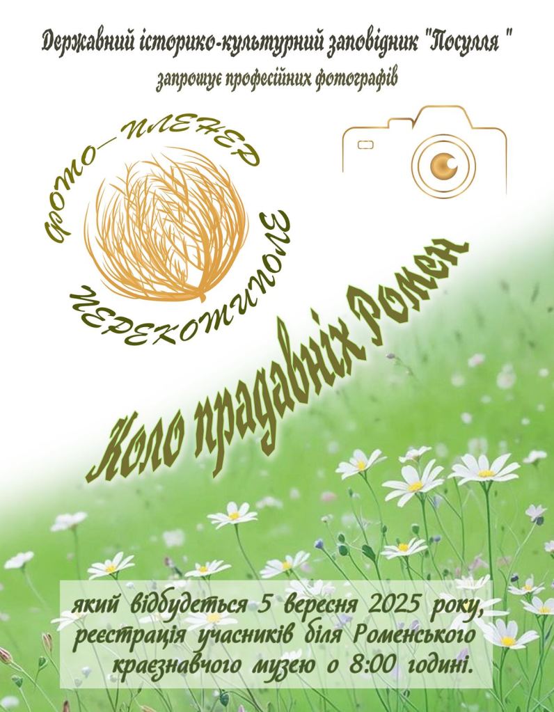 Комунальний заклад Сумської обласної ради “Державний історико-культурний заповідник “Посулля” запрошує професійних фотографів 5 вересня 2025 року взяти участь у фото-пленері “Перекотиполе. Коло прадавніх Ромен”.